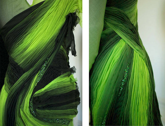 These garments, of Atelier LeonLeon, mostly evening, cocktail or bridal dresses, feature all the sophisticated techniques of couture. These completely bespoke and handmade garments are made with the highest quality materials, ensuring exclusivity and a unique luxury experience.