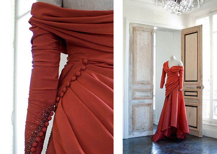 These garments, of Atelier LeonLeon, mostly evening, cocktail or bridal dresses, feature all the sophisticated techniques of couture. These completely bespoke and handmade garments are made with the highest quality materials, ensuring exclusivity and a unique luxury experience.